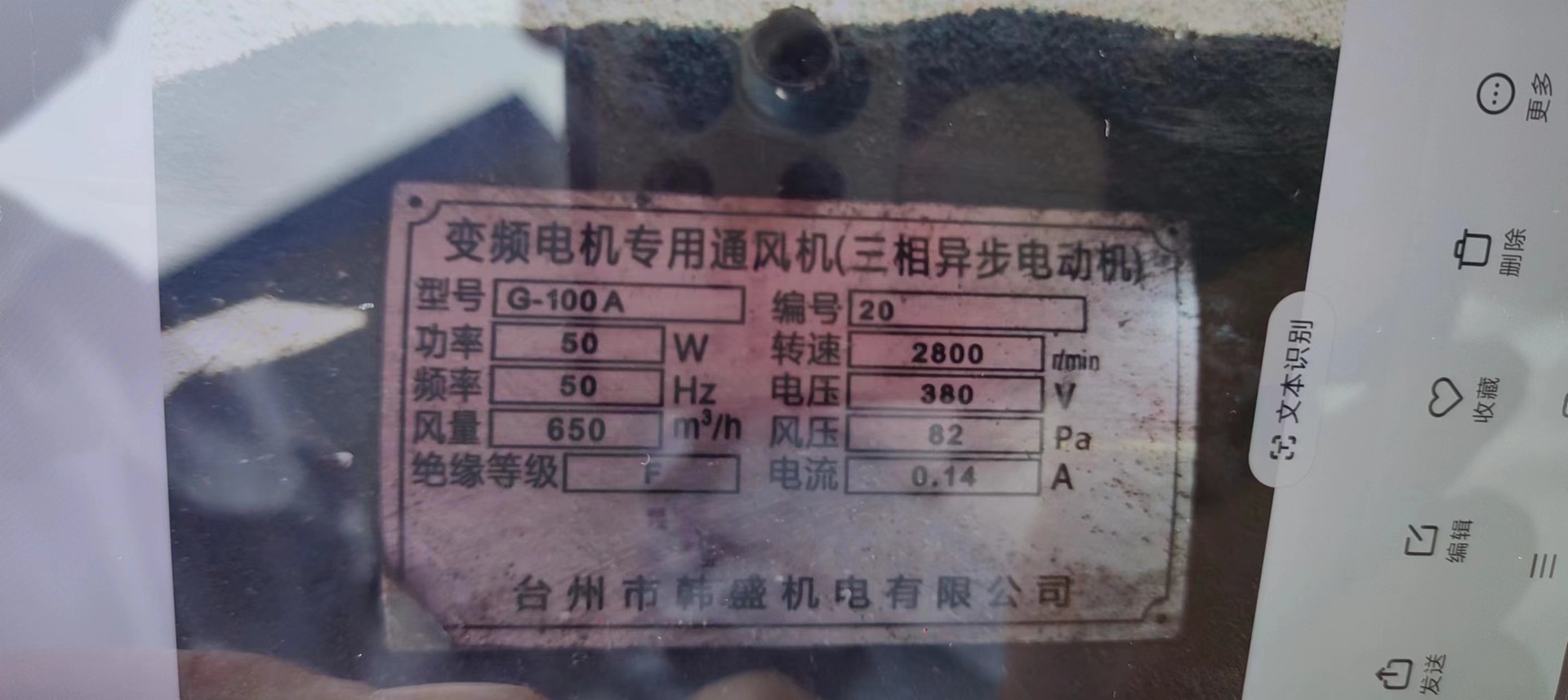 附风机铭牌图片
