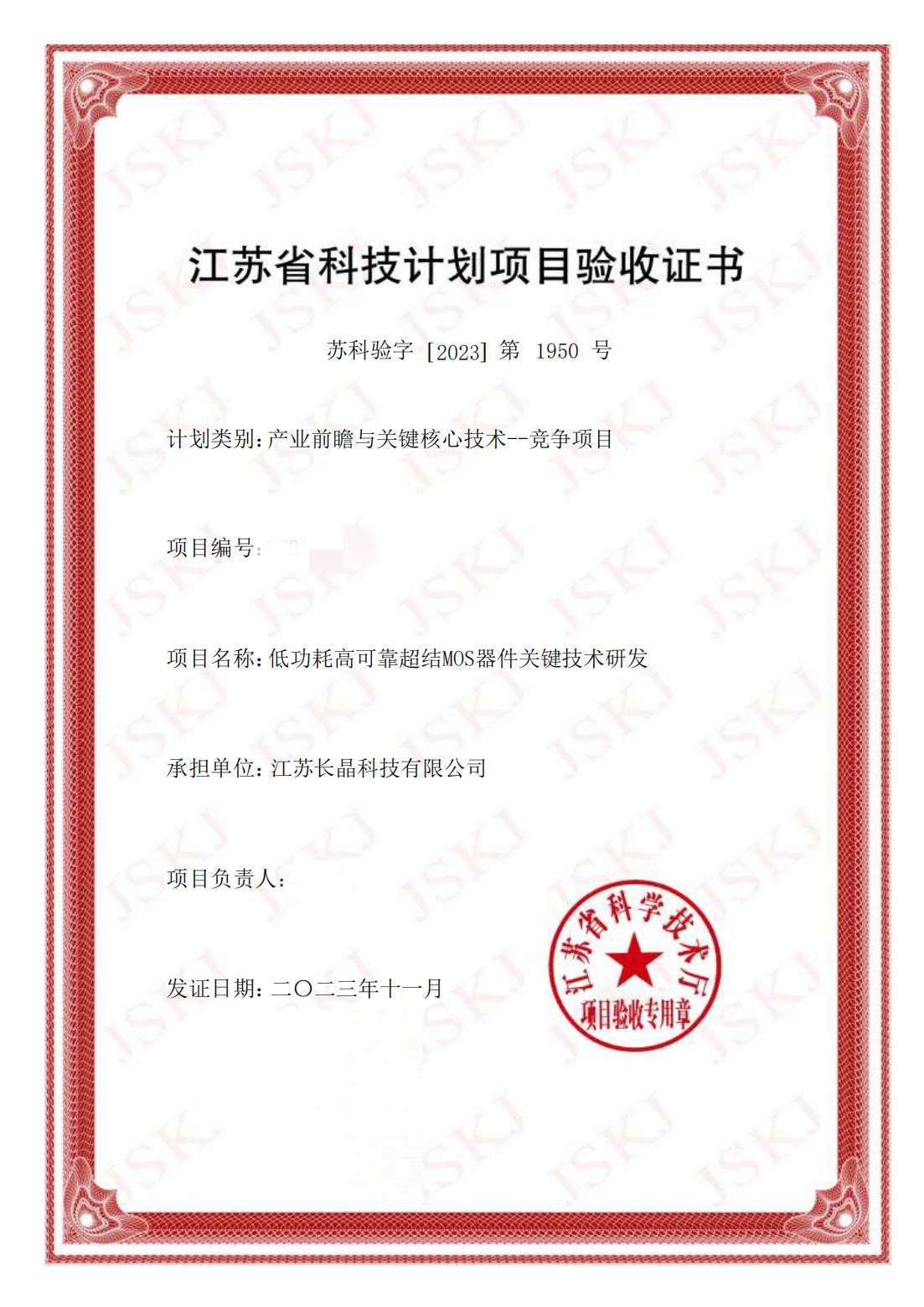 近期,由长晶科技承担的江苏省重点研发计划项目“低功耗高可靠超结MOS器件关键技术研发”顺利通过江苏省科技厅验收。