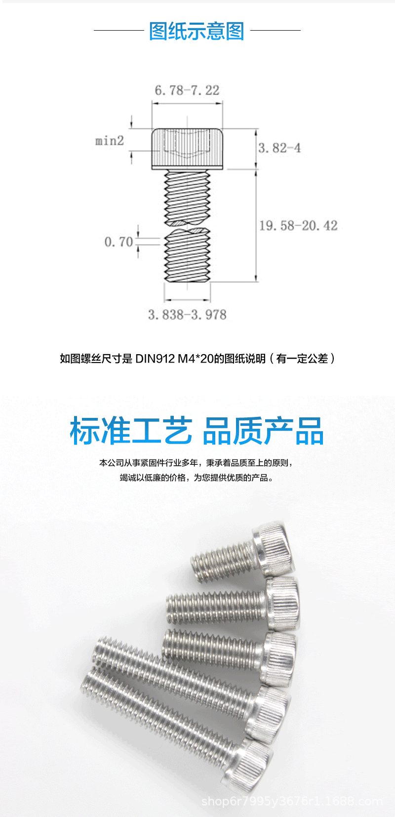 DIN912内六角螺栓316L材质M6*16/25/30/35/40/45/50/55/60/65-100