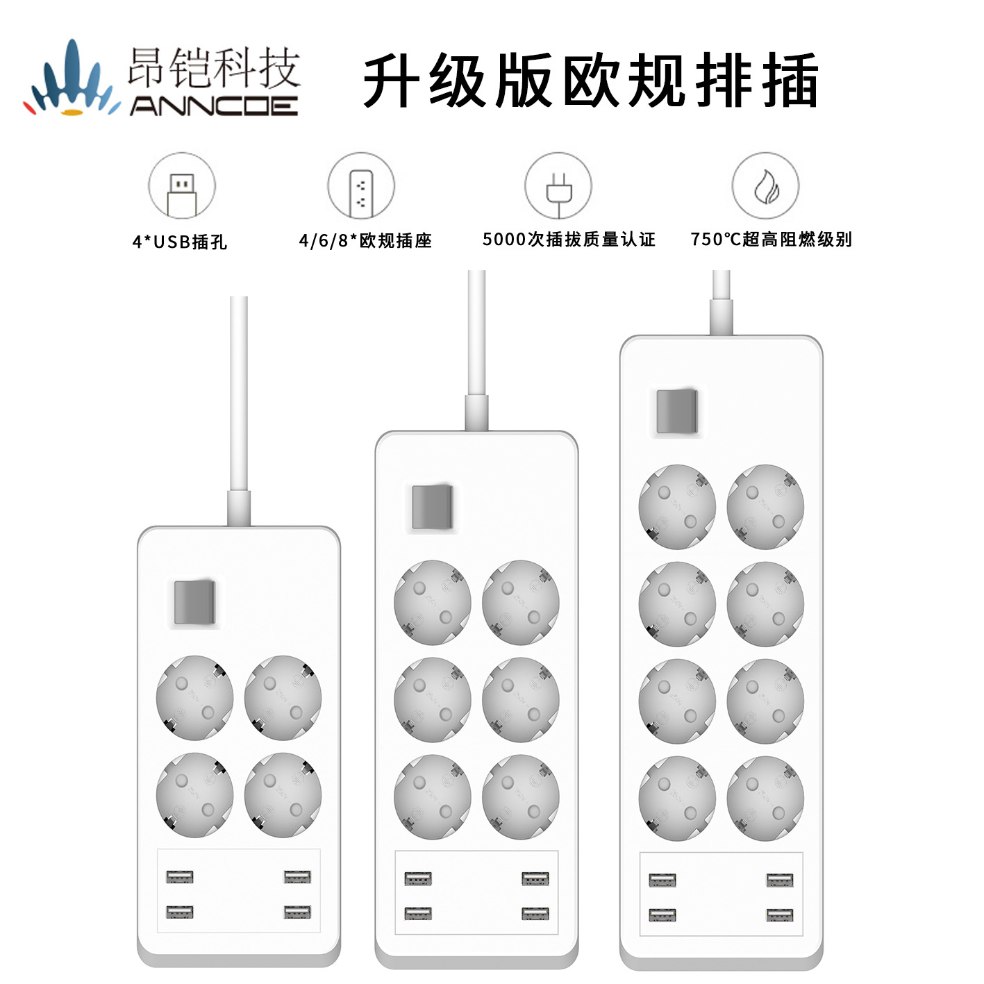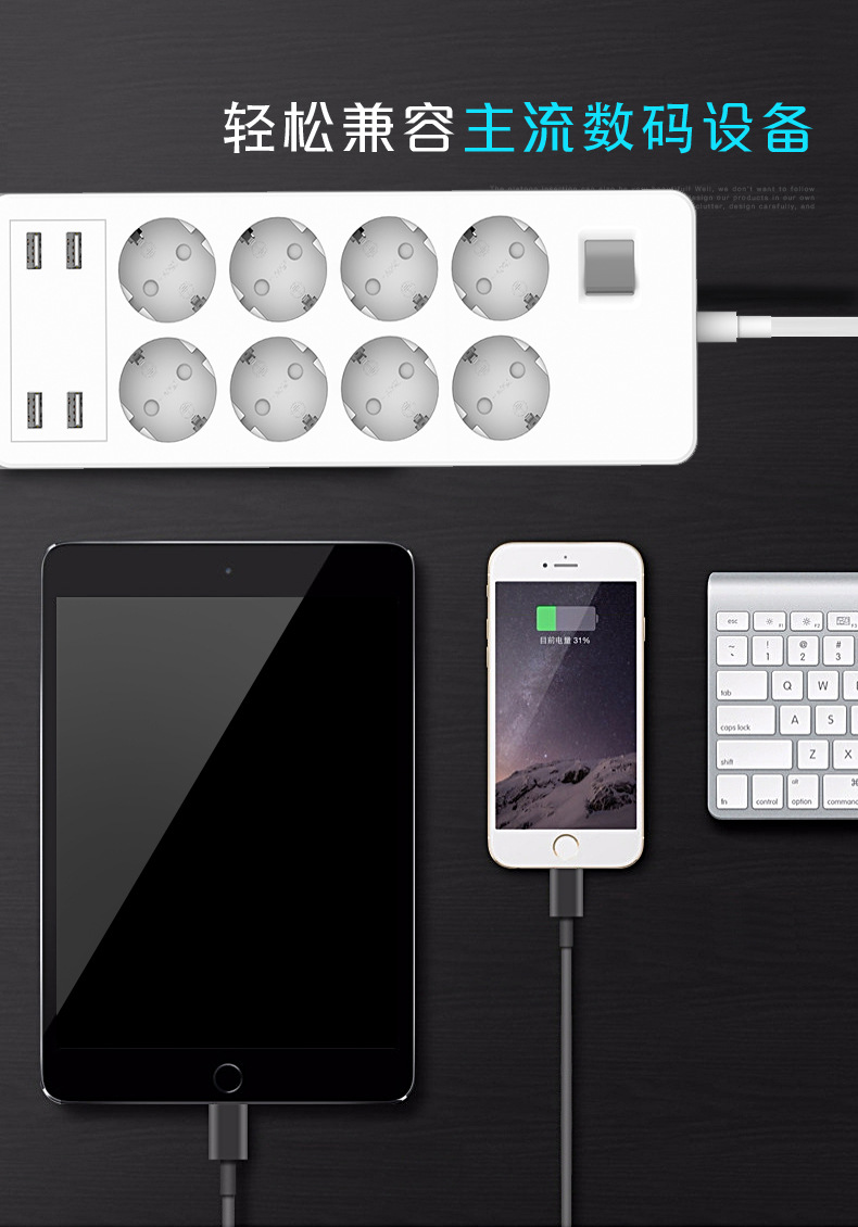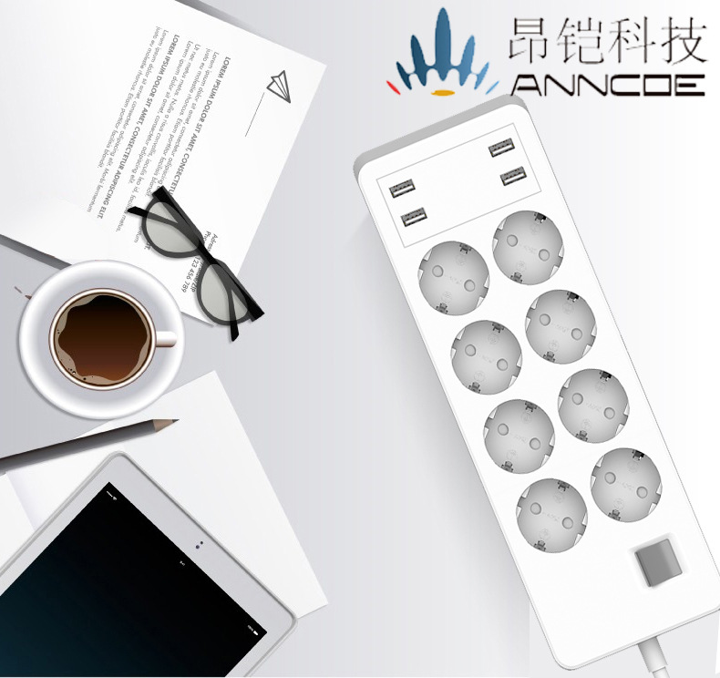 德国规格智能家居智能插座智能语音控制wifi智能排插4.8A4口USB