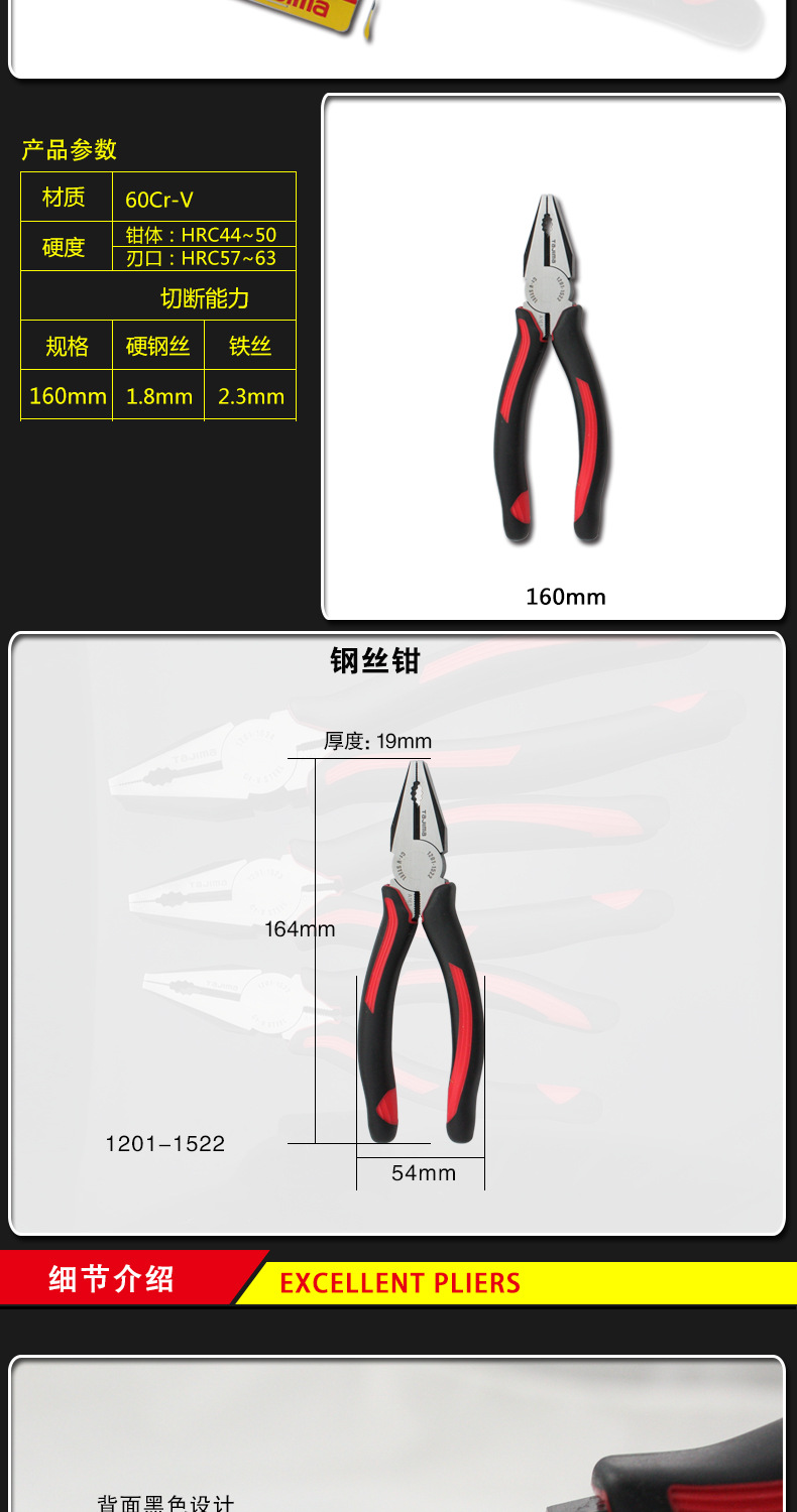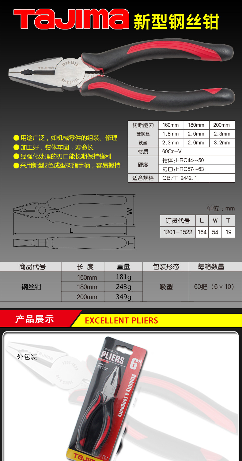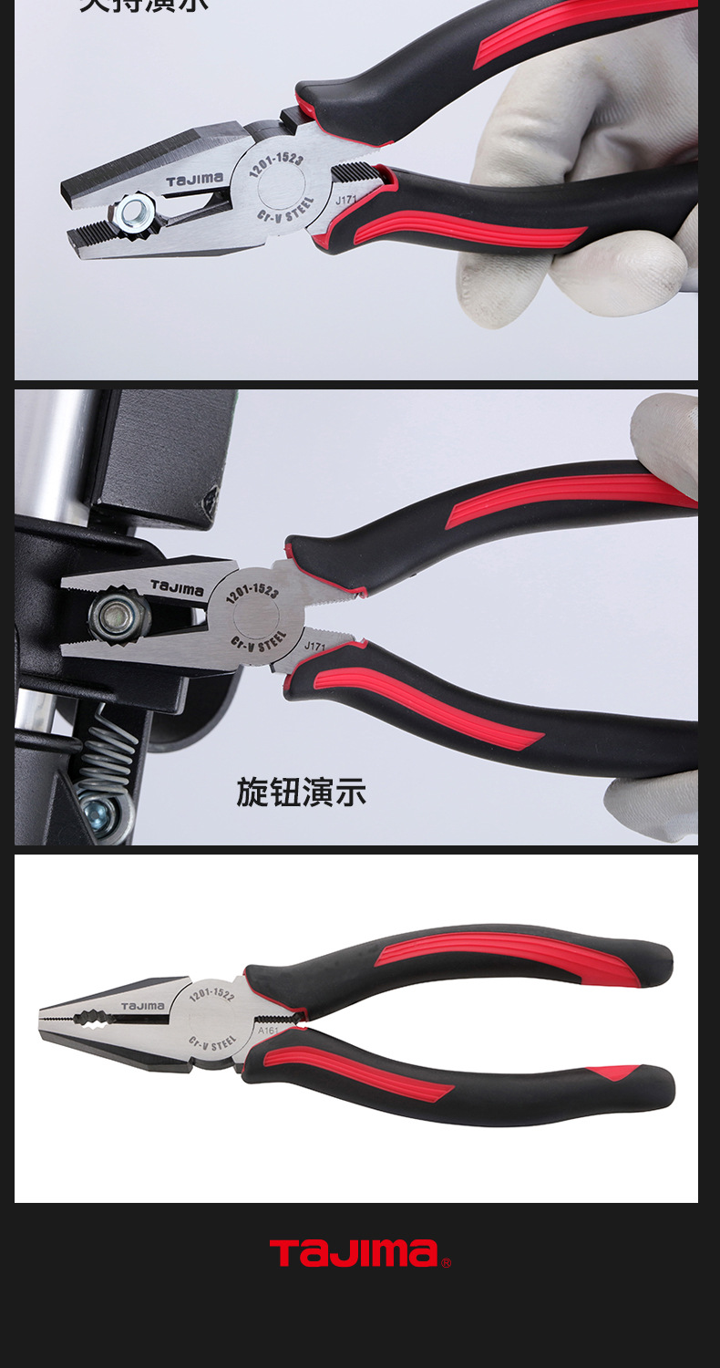 日本田岛TaJIma钢丝钳省力剪切钳老虎钳6寸7寸8寸家用电工用