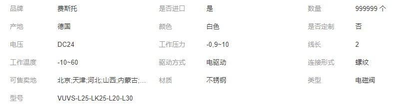 FESTO费斯托电磁阀 VUVS-L25-LK25-L20-L30 不锈钢材质