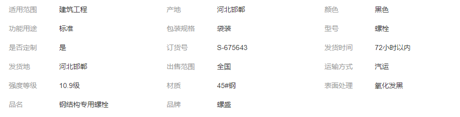 10.9级钢结构大六角螺栓连接副氧化发黑 平垫螺母磷化处理 螺盛