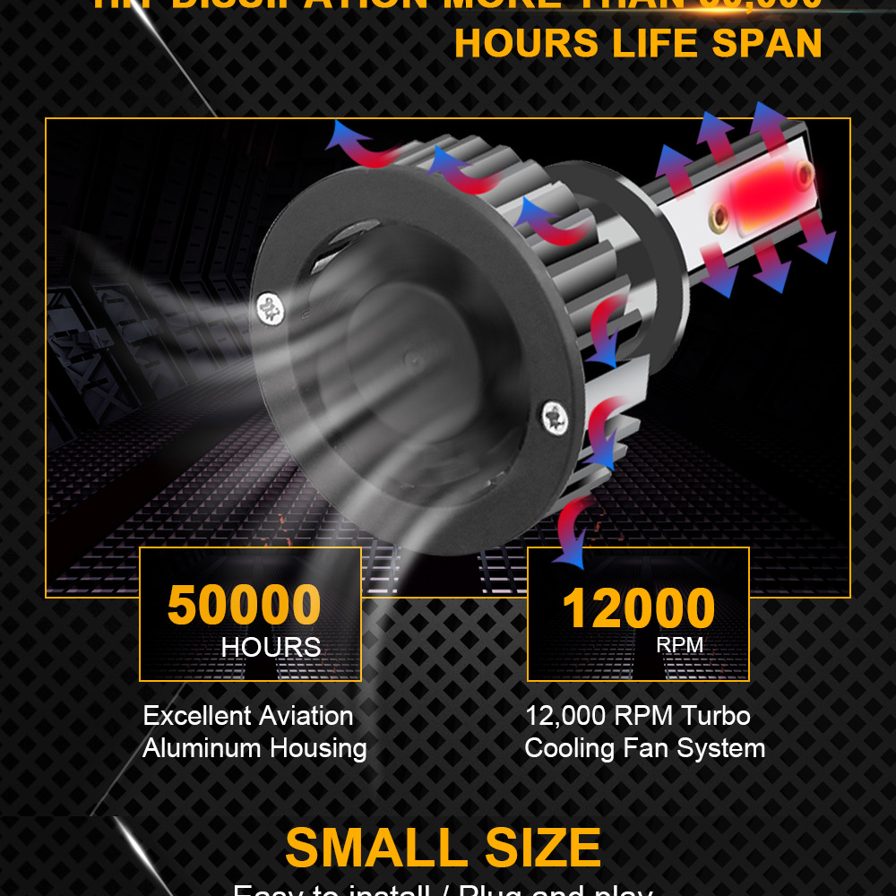 5.节能设计,38W达到3800流明光通量,比普通车灯更亮,更节能。