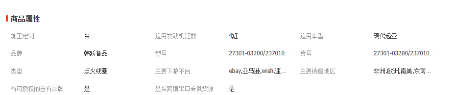 厂家直销供应跨境27301-03200适用现代高压包点火线圈273010320