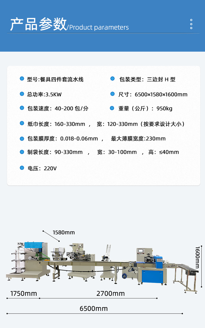 加工定制枕式包装机流水生产线全自动筷子四件套一次性餐具包装机