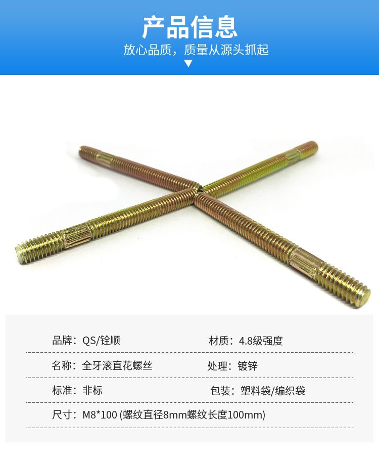 全丝杆 定制滚牙M8全牙滚花螺杆 搓花螺杆家具沙发全牙螺丝