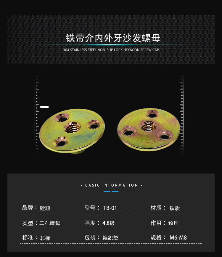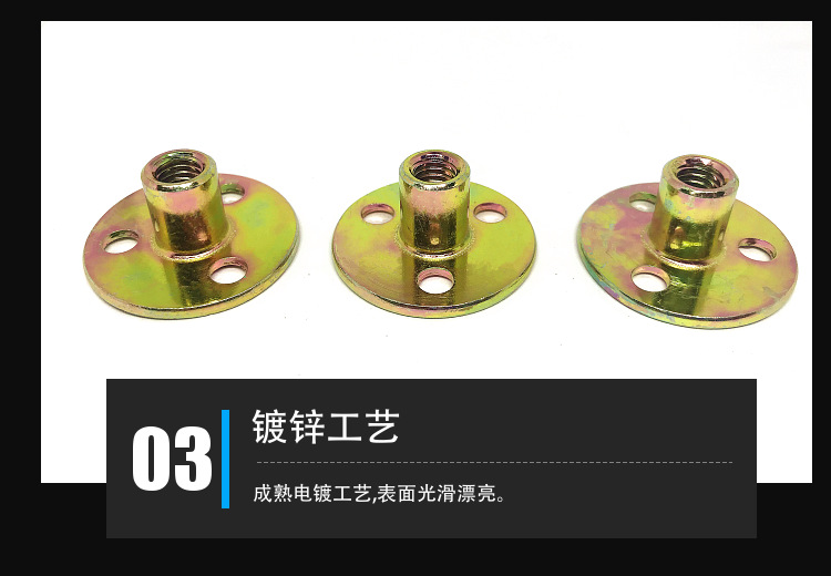 铁板螺母 工厂直供45#钢镀锌公制m6m8m10家具配件三孔预埋螺母