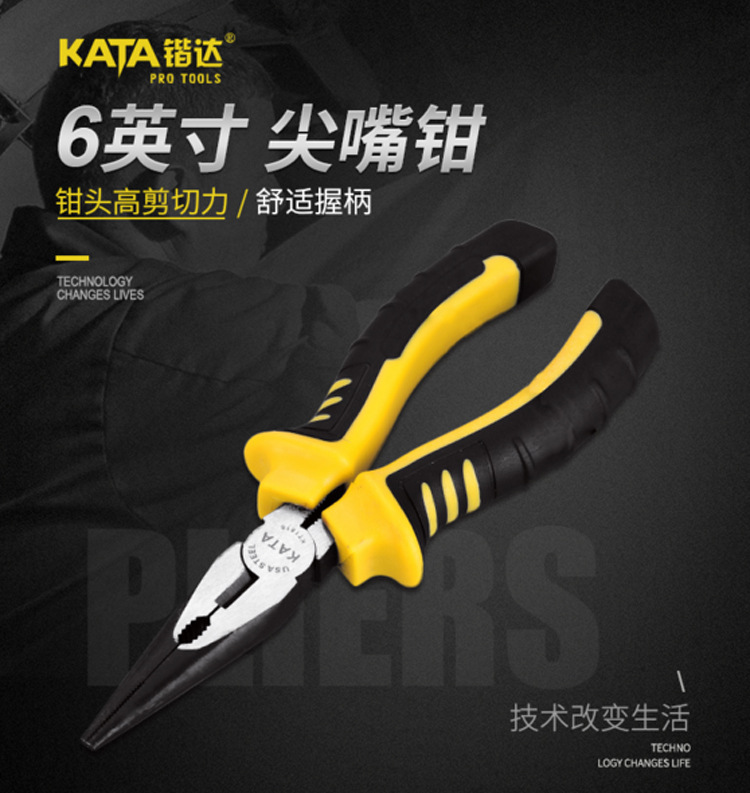 锴达6寸8寸省力尖嘴钳尖口钳尖咀钳子发黑防锈电工钳胶钳KT1816