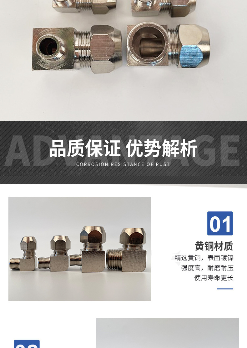 镀镍黄铜快排阀配件弯头卡套直角弯头铜管外丝弯头自控阀门配件