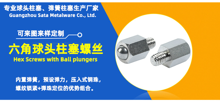 压入式钢珠定位螺丝 六角球头柱塞螺丝 商业照明五金件非标定位珠