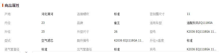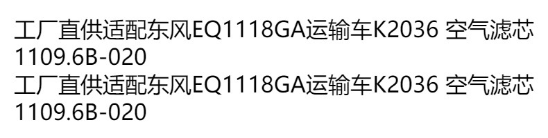 工厂直供适配东风EQ1118GA运输车K2036 空气滤芯1109.6B-020