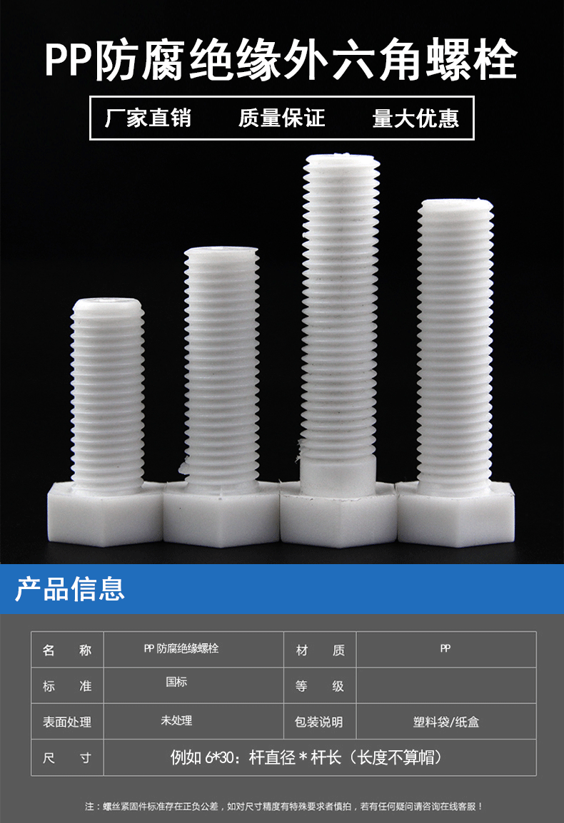 M3-M20外六角螺栓 PP聚丙烯 塑料六角头绝缘螺丝 塑胶防腐耐酸碱