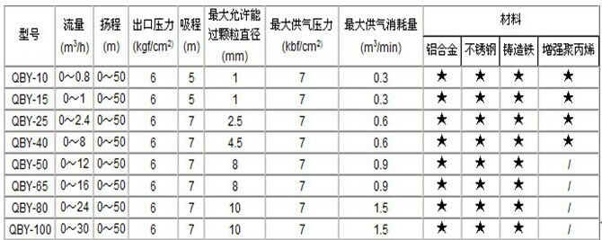 QBY气动隔膜泵 产品性能参数: |