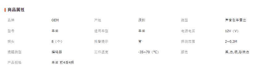适用于丰田卡罗拉雷凌凯美瑞原车雷达 原车内嵌式8探头汽车雷达