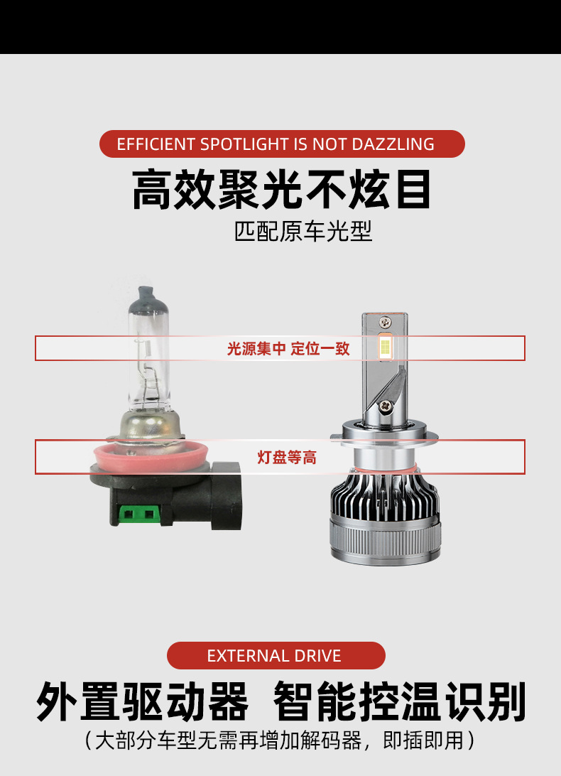 led汽车前大灯 超亮聚光H4H7远近一体大功率前照灯改装汽车灯泡