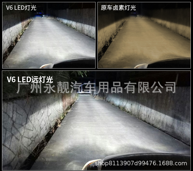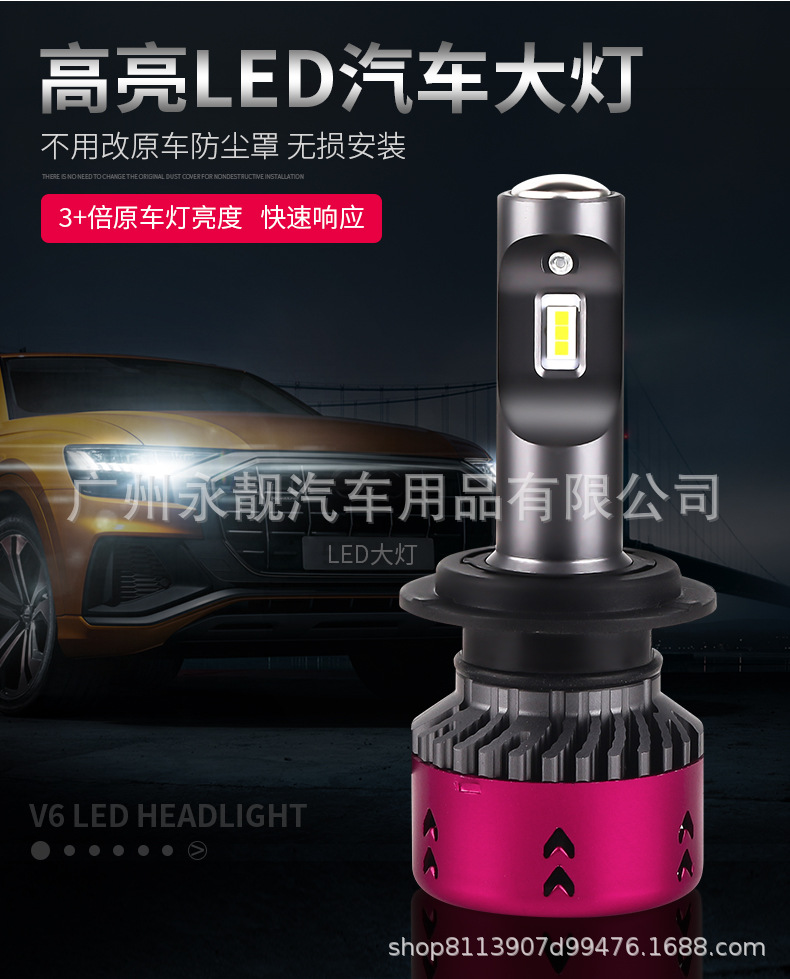 跨境专供 V6汽车LED大灯h1h7h11h49005超亮聚光车灯泡外贸爆款