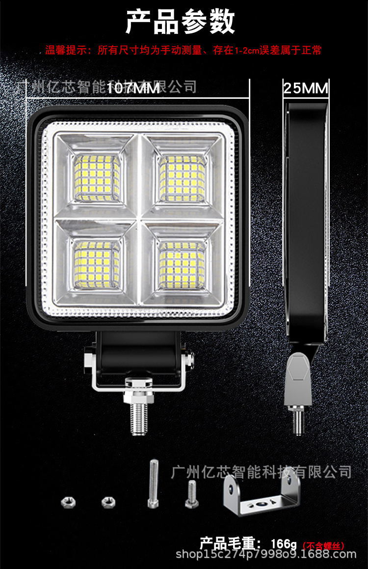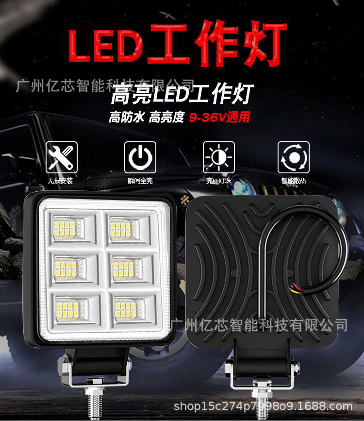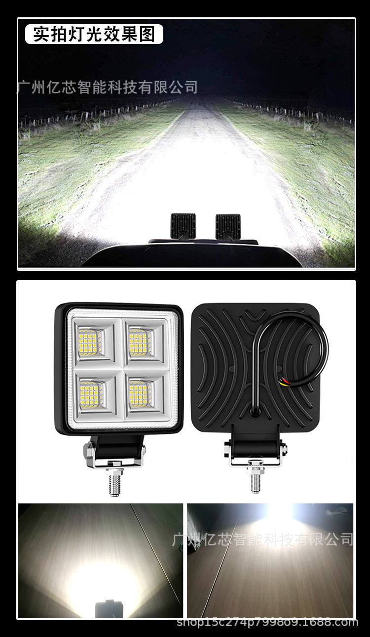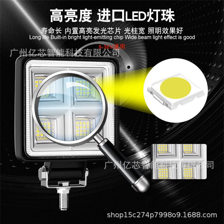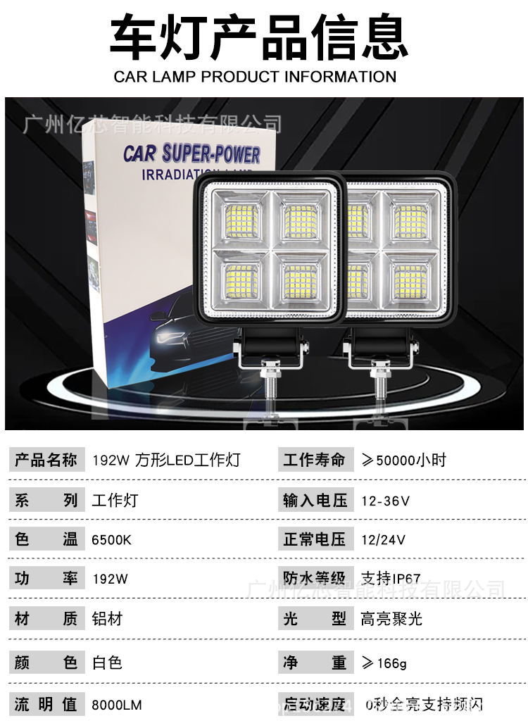 厂家直供 新款大视野4寸方形64LED192W工作灯越野车射灯led倒车灯