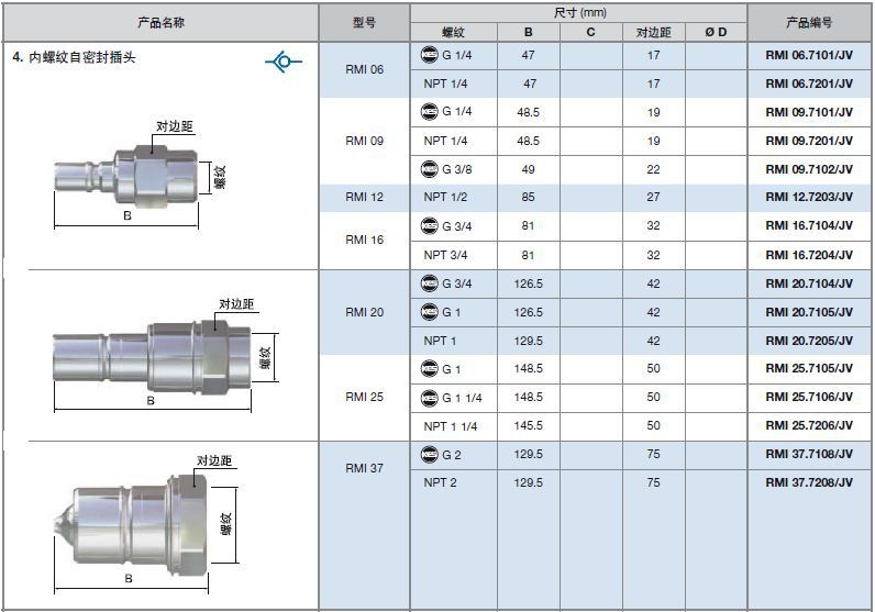 STAUBLI自封式插头:RMI06.7150/ RMI09.7151/JV RMI09.7152/JV RMI12.7152/JV RMI12.7153/JV RMI16.7154/JV RMI09.5102/JV