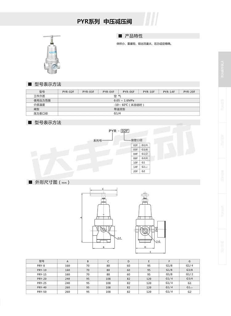 供应纽立得PYR-02F 气动中压减压阀 压力设定精确 输出流量大