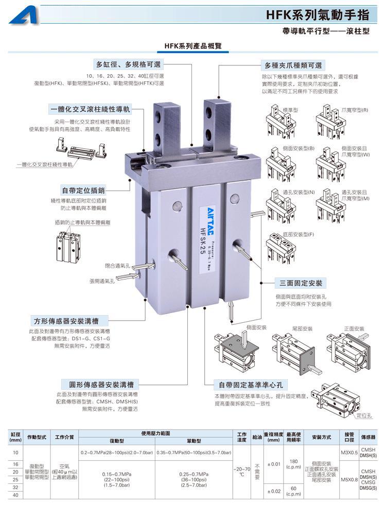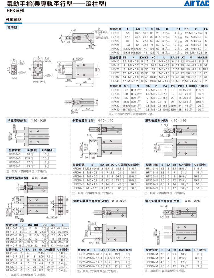 正品亚德客气动手指气缸平行夹爪加长HFKL/HFK10 16 20 25 32 40