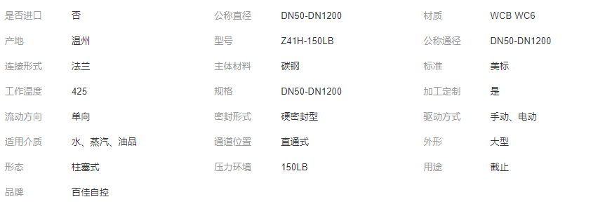 百佳自控API系HG20615标准Z41H-150LB铸钢美标闸阀