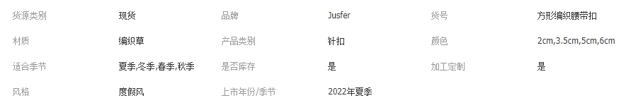 品牌:JUSFER 品名:包布扣 货号:拉菲草腰带扣 尺寸:2cm,3.5cm,5cm,6cm 款式:方形三档扣,日字扣 注意:请联系客服确认真实色样 |