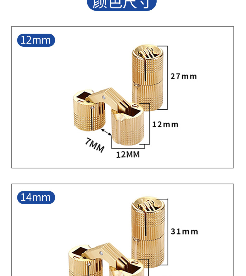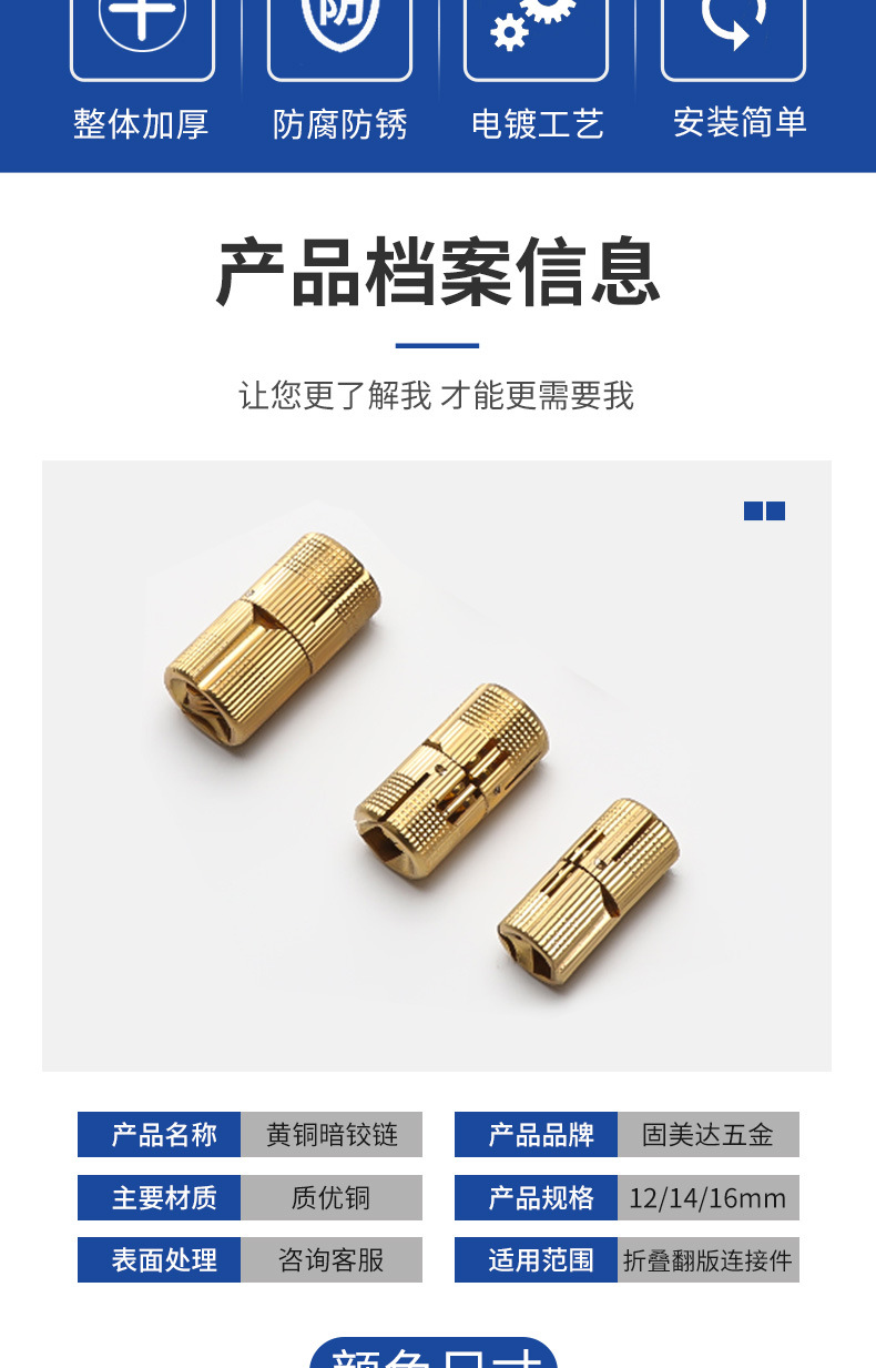 黄铜一字暗铰链水桶圆柱折叠门隐藏合页铰链门窗五金配件厂家批发