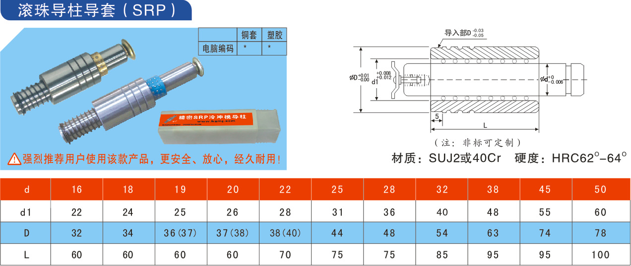 罗门SRP滚珠导柱滚动导柱精密冲压模外导柱冷冲导向件¢16*80-160