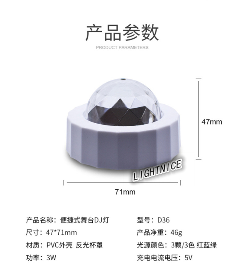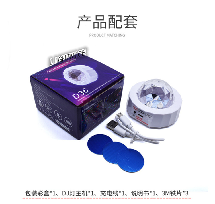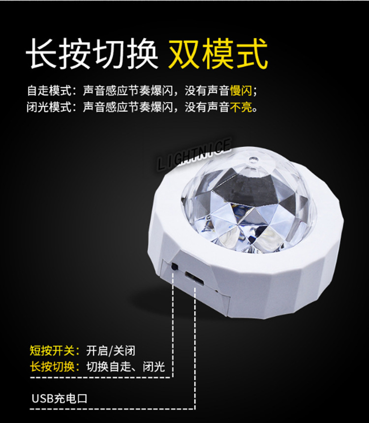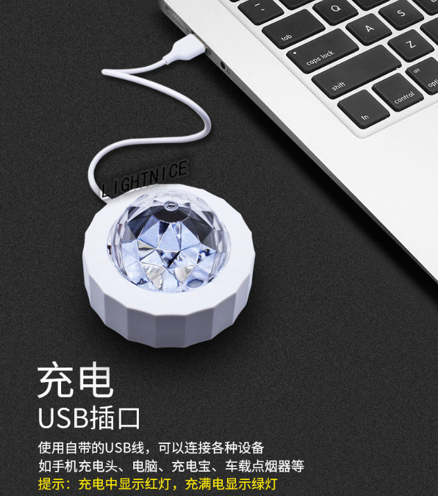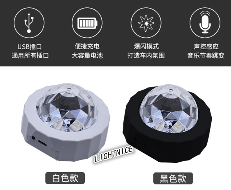 汽车氛围灯 USB充电声控led舞台装饰灯 迪斯科魔球圣诞音乐节奏灯