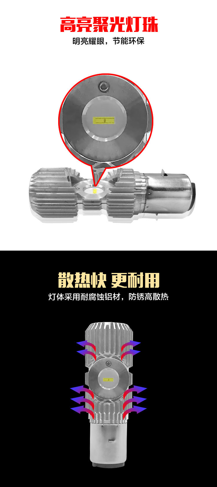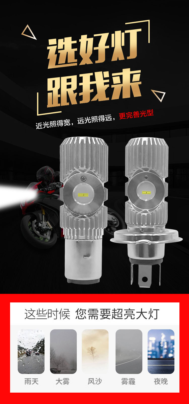 3.采用了汽车灯的灯珠来赋能在摩托车灯上,提高专 业的亮度与聚光!使得驾驶体验更美!