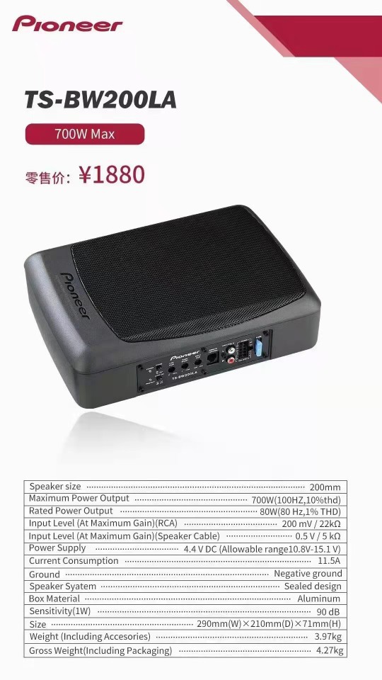 先锋TS-BW200LA炮,先锋6x9超薄炮,汽车改装低音炮
