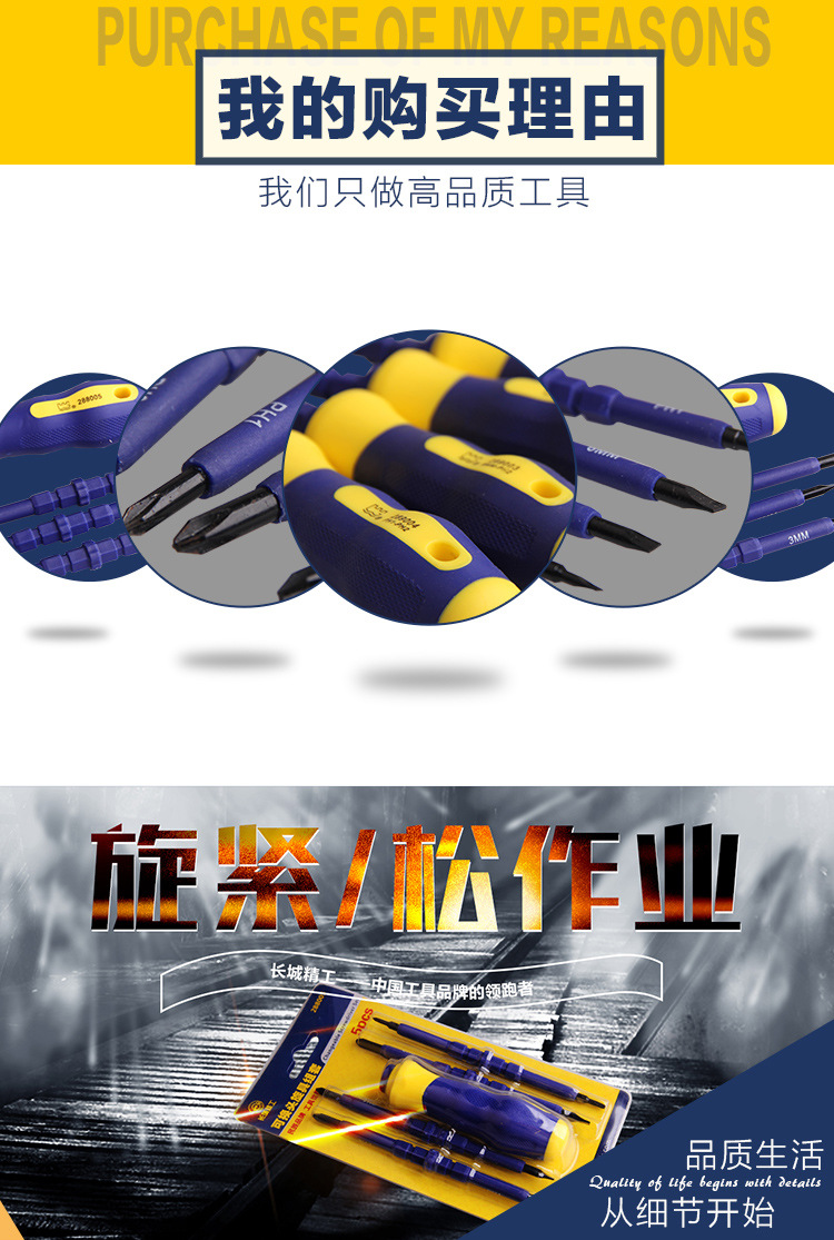 长城精工十字螺丝刀家用套装两用双头锣丝刀一字起子改锥改刀工具