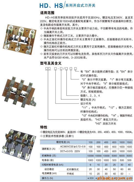 注:通断能力为带有灭弧室的刀开关的技术指标 |