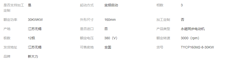 新大力电机TYCP160M2-8-30KW永磁变频电机系列节能电机