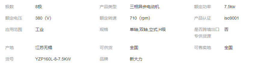 新大力电机YZP160L-8-7.5KW变频调速起重及冶金用电动机