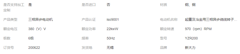 新大力电机YZR200L-6 22KW绕线转子三相冶金起重电机