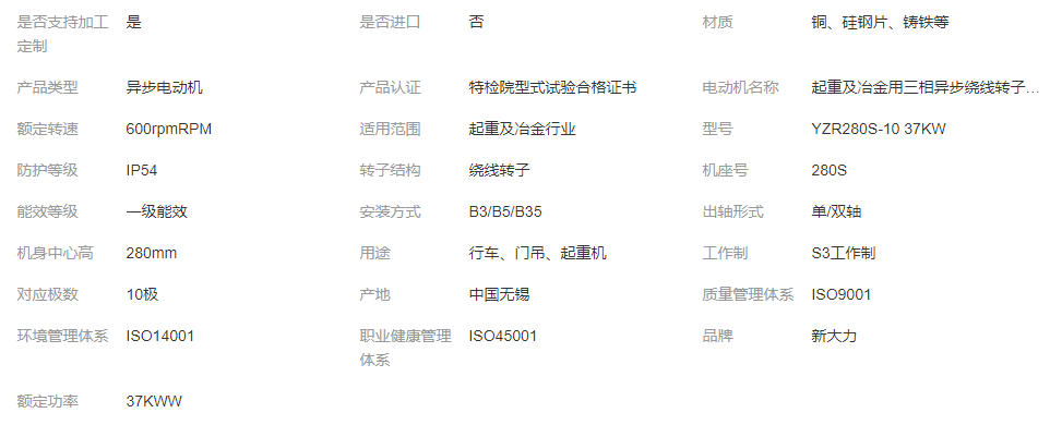 新大力 起重及冶金用 一级能效 三相异步绕线转子电机 YZR280S-10 37KW