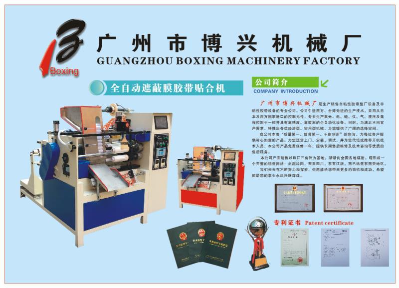 产品用途高速全自动遮蔽膜胶带贴合机,一个人可以操作5台机器,效率高,产品非常整齐。 本厂品适用于汽车