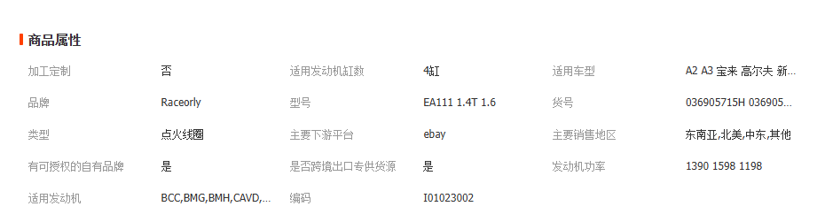 适用于大众奥迪斯柯达EA111高性能点火线圈036905715H 036905715