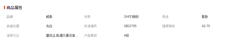 余姚威泰紧固件有限公司专业生产不锈钢膨胀螺丝/不锈钢304膨胀螺丝/拉爆螺丝/不锈钢车修螺丝/不锈钢车修壁虎/不锈钢有缝管膨胀螺丝/不锈钢内六角螺栓/不锈钢SS304不锈钢内六角螺栓/DIN912/GB70-85/GB70.1/不锈钢螺栓/SUS304六角螺栓/SUS316内六角螺栓/A2-70不锈钢螺栓/A4不锈钢螺丝DIN933/DIN931不锈钢外六角螺栓/国标GB5783/GB5782六角螺栓/DIN912/GB70-85不锈钢内六角螺栓/DIN7991/GB70.3不锈钢沉头内六角螺栓/ISO7380/GB70.2不锈钢半圆头内六角螺栓/不锈钢膨胀螺栓/不锈钢螺母MU/DIN603/GB12/GB14不锈钢马车螺栓/不锈钢非标螺栓产品: