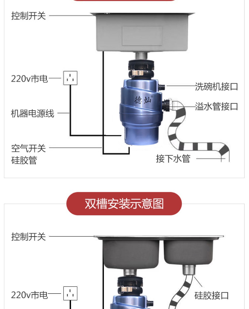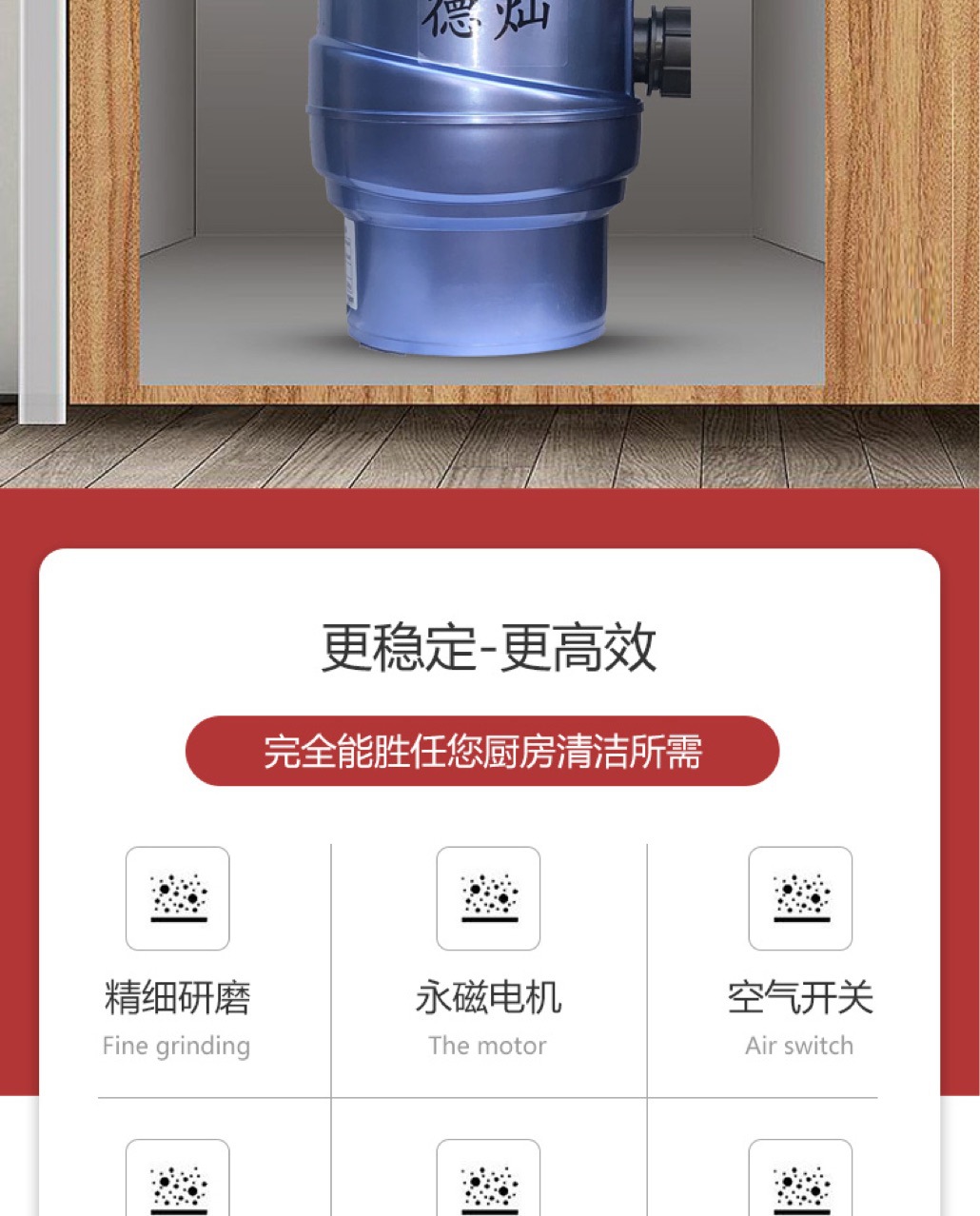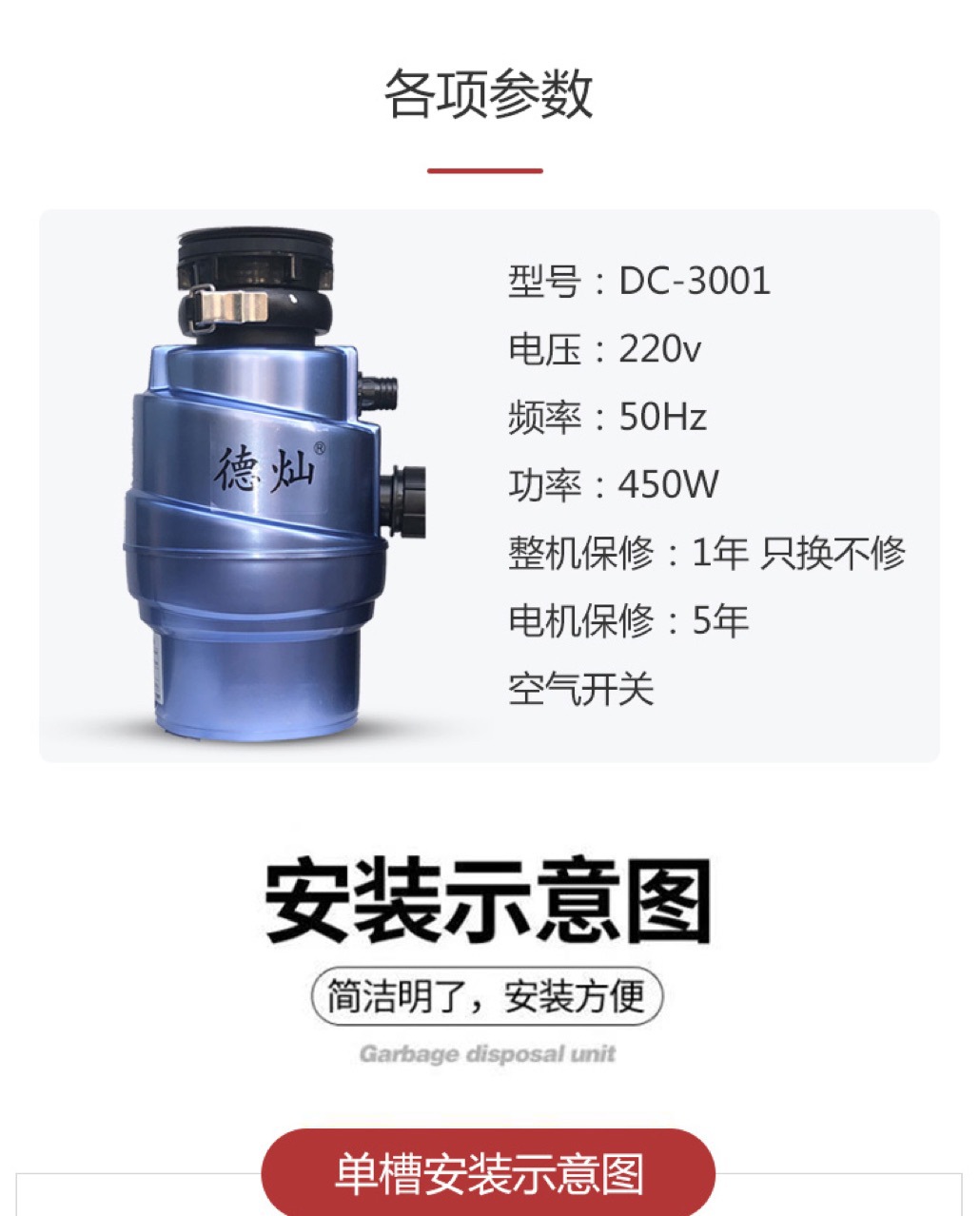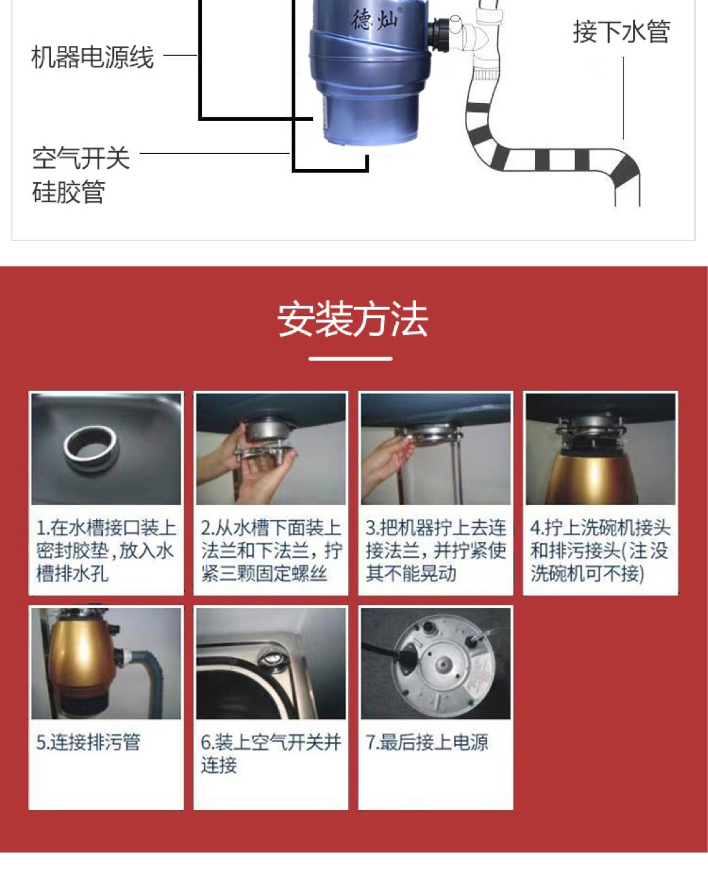 德灿食物垃圾处理器以内销和承接OEM为主,产品质量可靠,专业的品牌,自有生产线,厂价直销,省去巨额广告费,超高性价比!