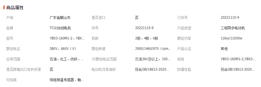 台创公司防爆电机为YBX3系列高效率隔爆型三相异步电动机,执行的标准是(JB/T12628-2016)《YBX3系列高效率隔爆型三相异步电动机技术条件(机座号63-355)》,这个标准也符合国标《GB/T3836.1-2021 爆炸性环境 第一部分:设备通用要求》和GB/T3836.2-2021《GB/T3836.2-2021 爆炸性环境 第二部分:又隔爆外壳“d”保护的设备》要求,同时也满足国家的能效要求:《电动机能效限定值及能效等级》(GB 18613-2020)。