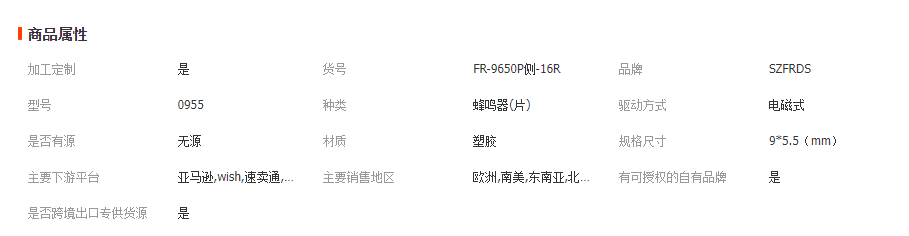 芙蓉电声0955 9650一体16欧无源交流AC 电磁式侧发声蜂鸣器BUZZER