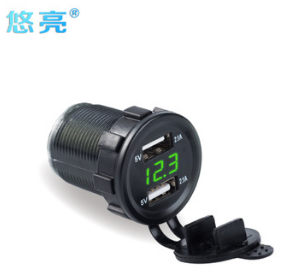 供应4.2A双USB车载充电器车载点烟器插座双孔一拖二车载手机充电