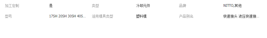 一,模具冷却运水配件:快速接头,铜水咀,连接头, 桥式接头,喉塞,止水栓,直身隔水片,螺旋隔水片,运水管,冷却棒,传统水咀,内外牙水咀,油路接头/油咀。