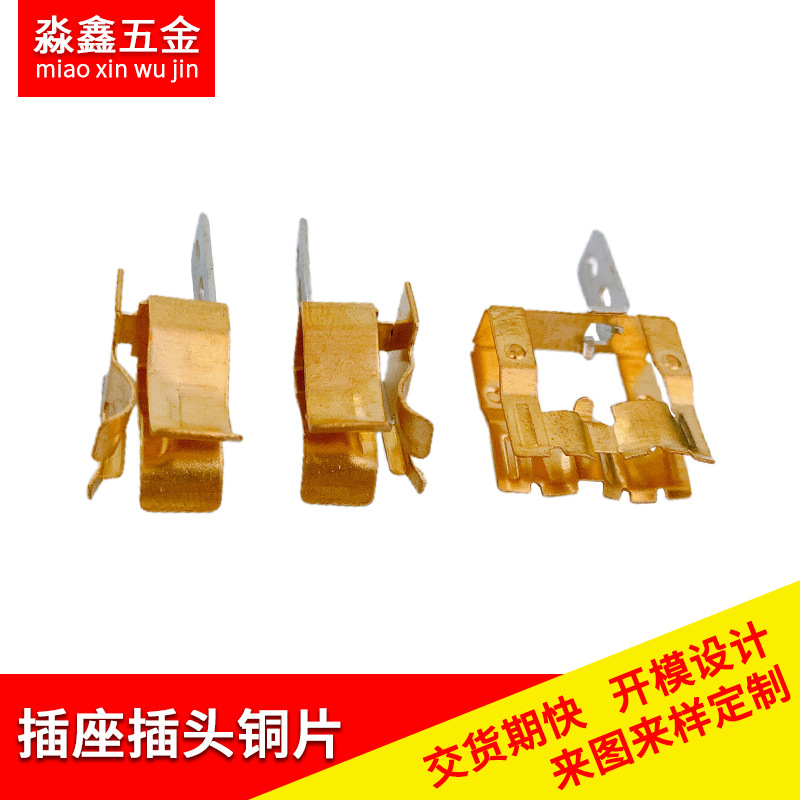 淼鑫插座铜片磷铜弹片金属冲压件黄铜接触片冲压件厂家定制直供