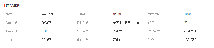 索普迈克CS标准气缸/SC32/40/50/63/80/100/125/160/200/250/320