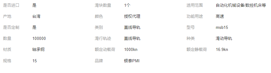 PMI/银泰 组装直线滑块 低阻直线导轨 一级代理