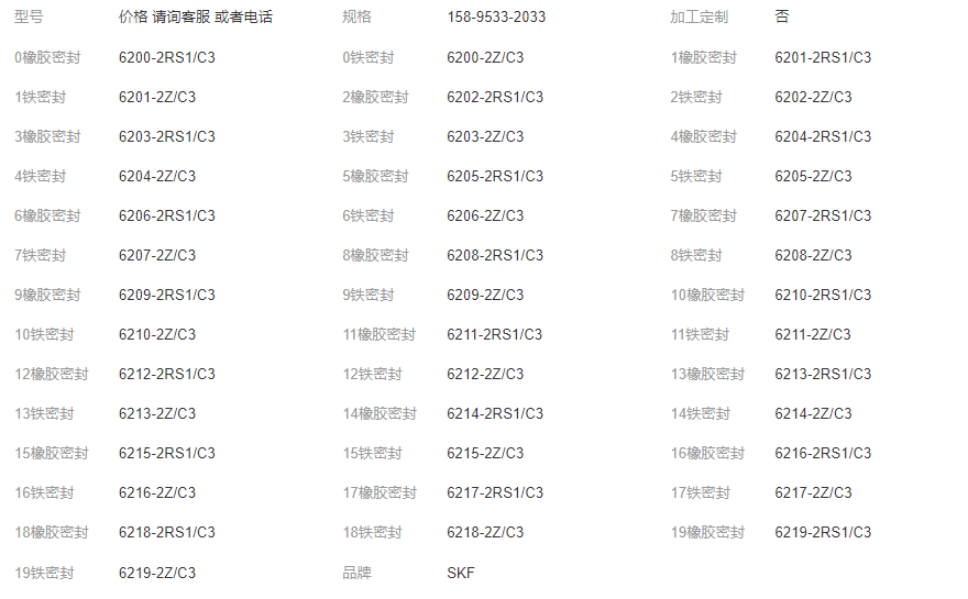 进口SKF轴承 6206-2Z/C3 6206-2RS1/C3 电机轴承 库存齐全 深沟球轴承